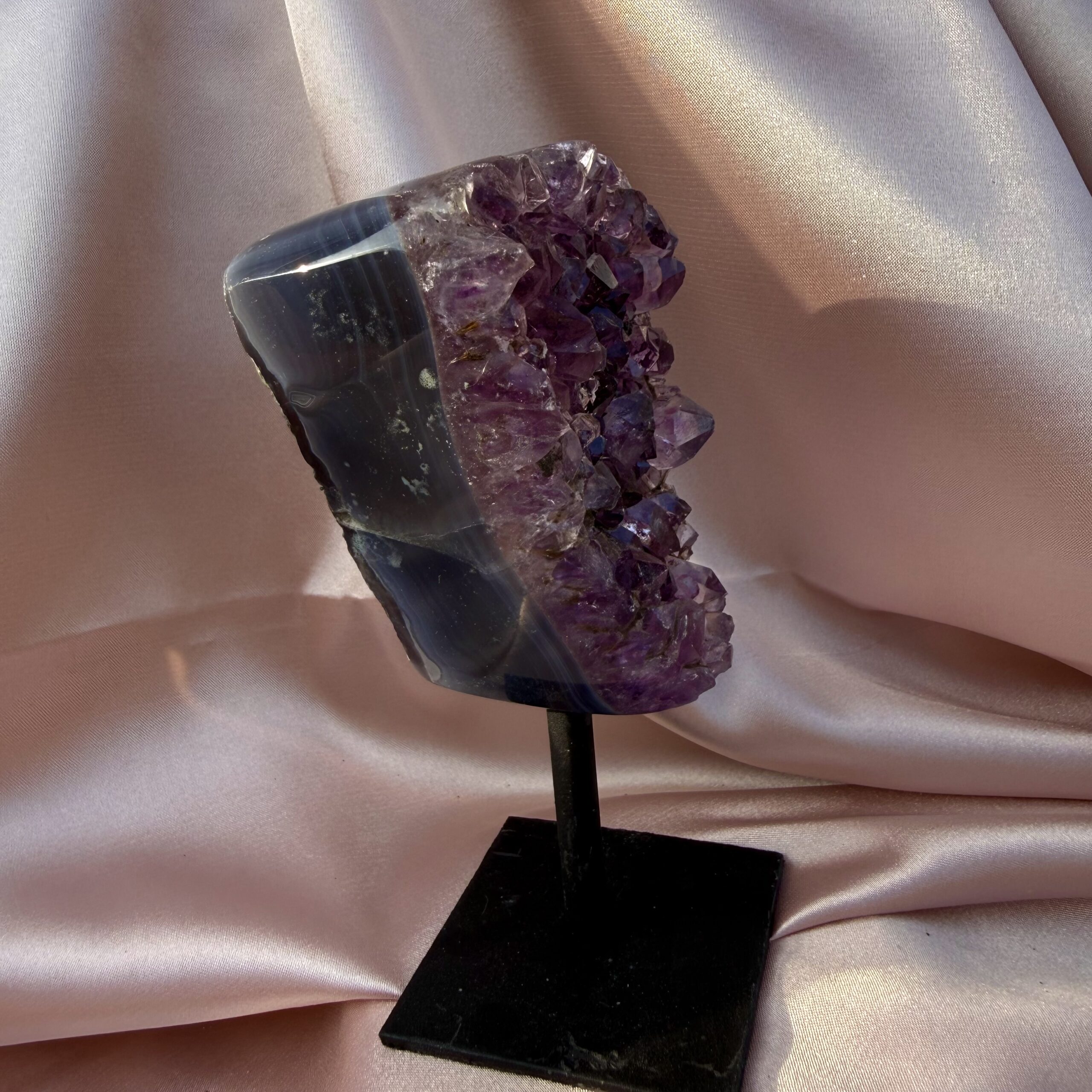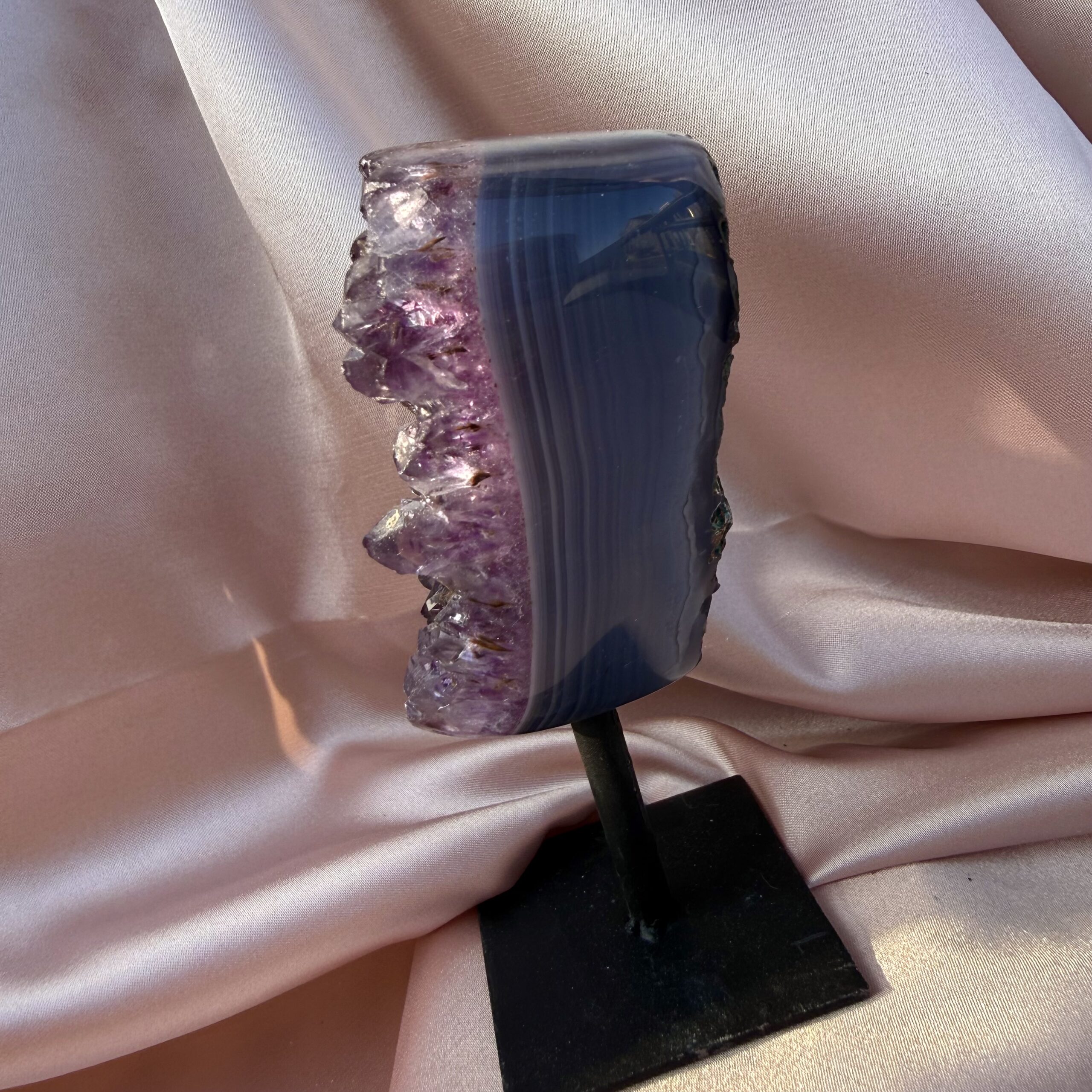 Blue Agate with Amethyst on stand