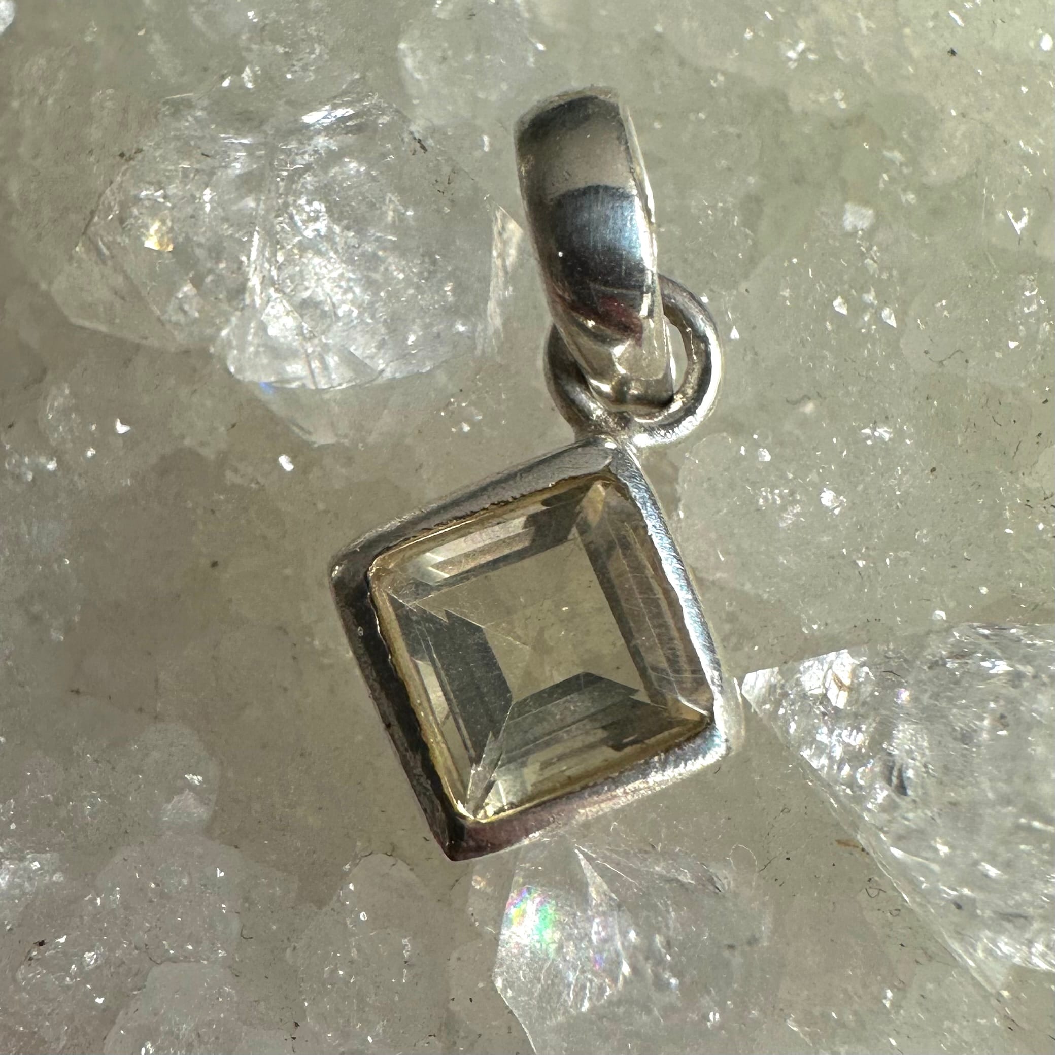 Embrace timeless elegance and profound energy with our Princess-Cut Citrine Pendant. Crafted from solid sterling silver and measuring approximately 2cm, this exquisite piece combines beauty with spiritual depth.
