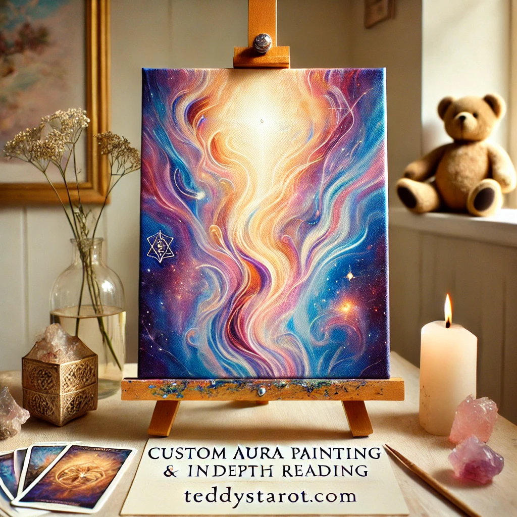 Your aura will be psychically read and hand-painted on a 20×25 cm canvas, infused with high-vibrational energy and intention.
