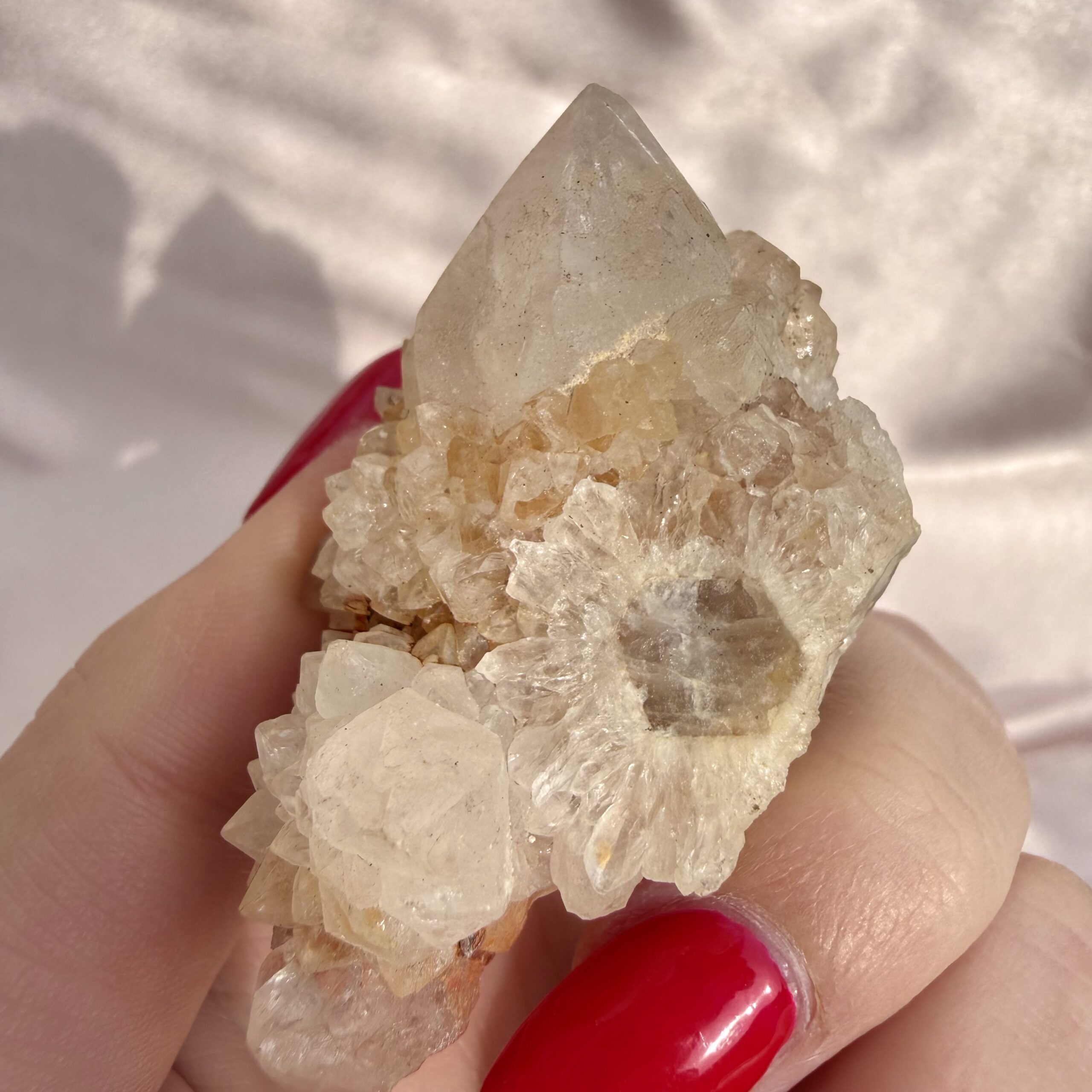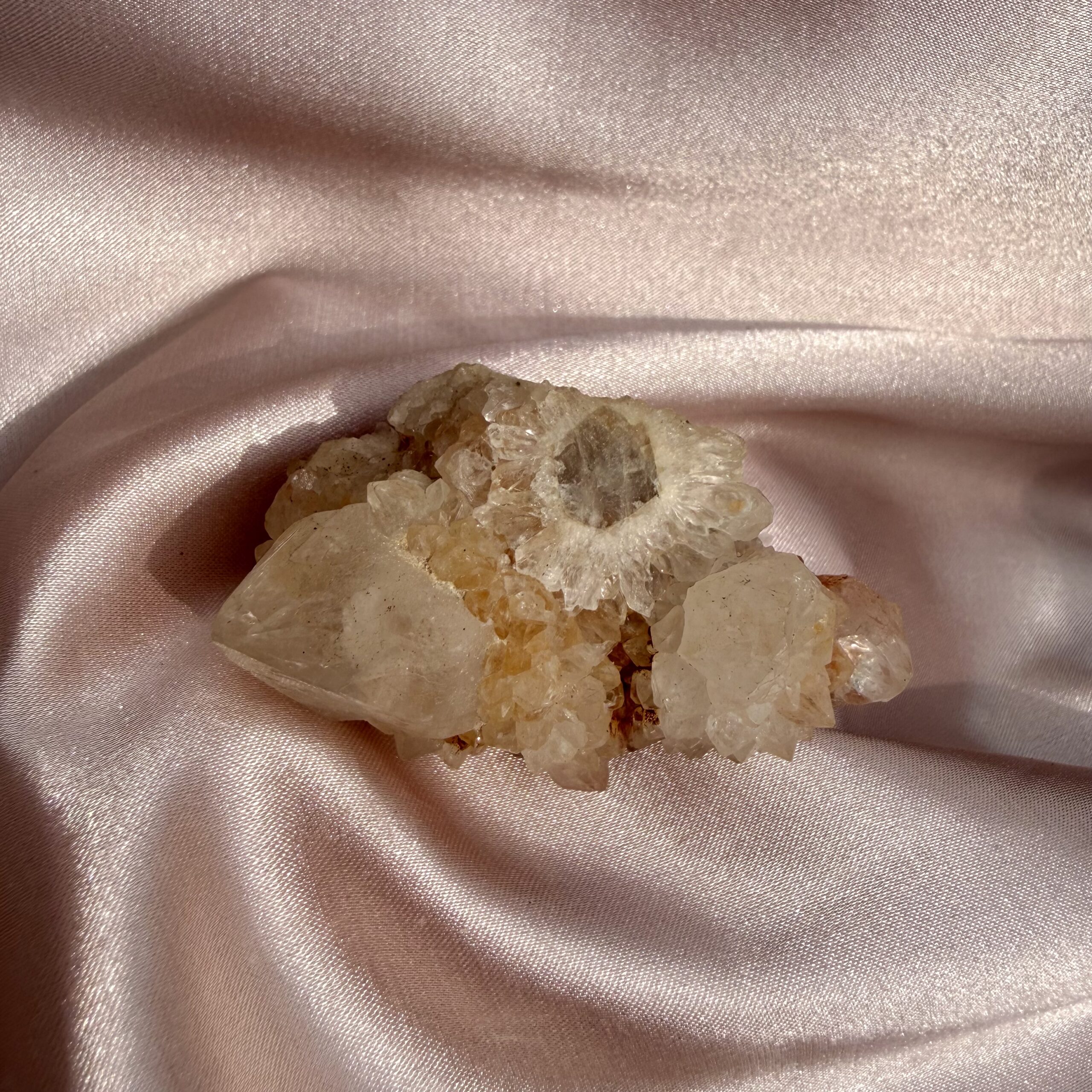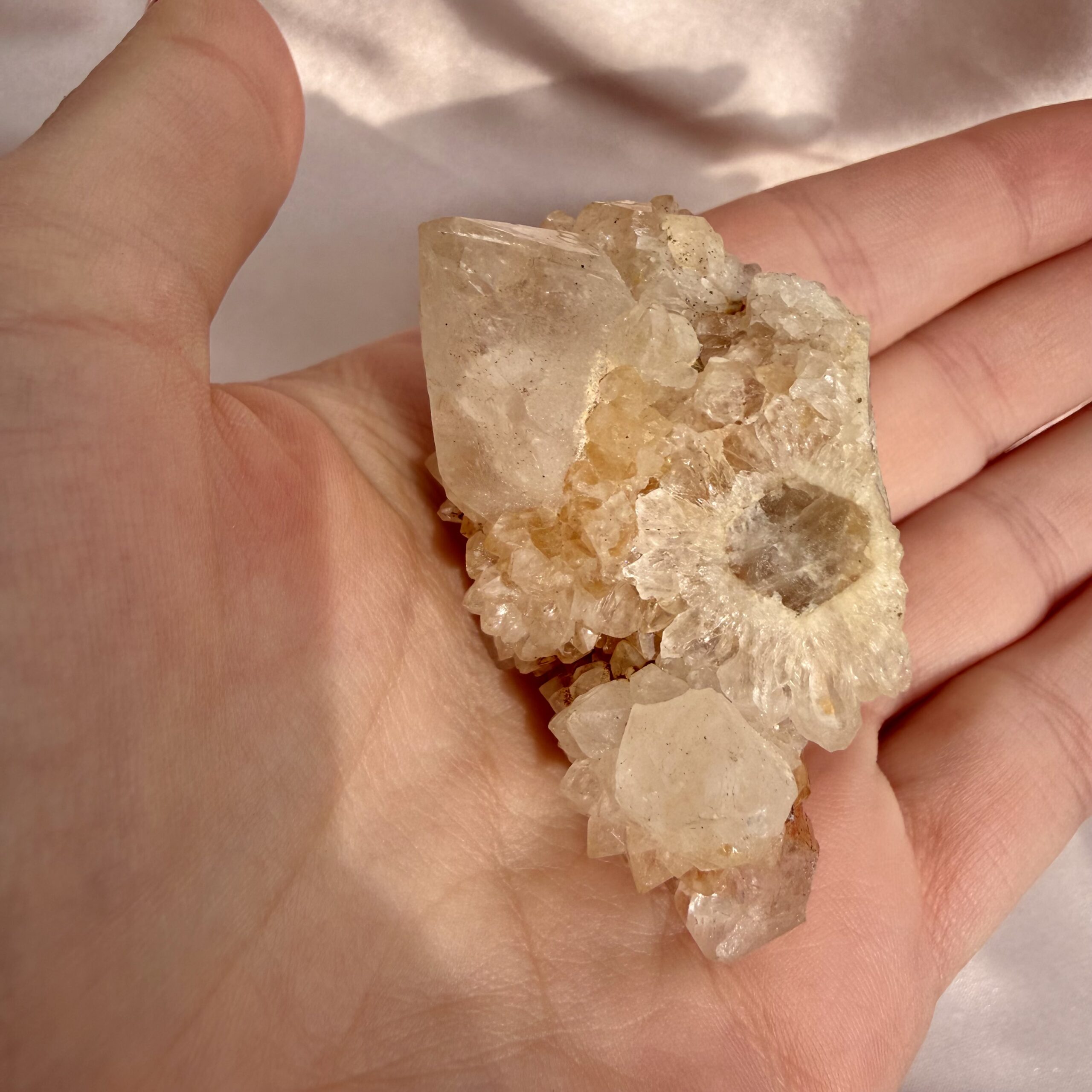 Spirit quartz is celebrated for its amplifying, healing, and uplifting energy, and the “Golden Healer” variety carries the additional vibration of vitality, abundance, and spiritual clarity. The flower-like arrangement further enhances its energetic flow, making it perfect for meditation, manifestation, or simply radiating light in any room.