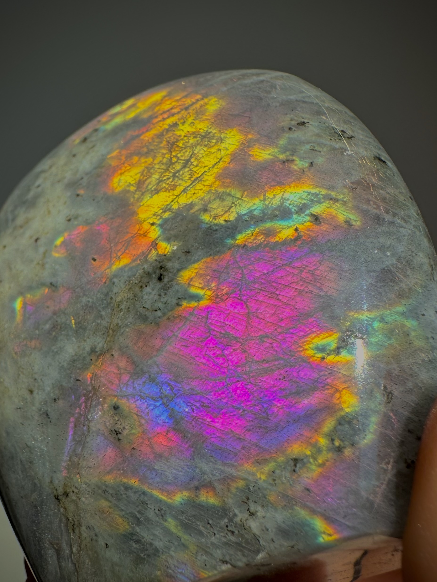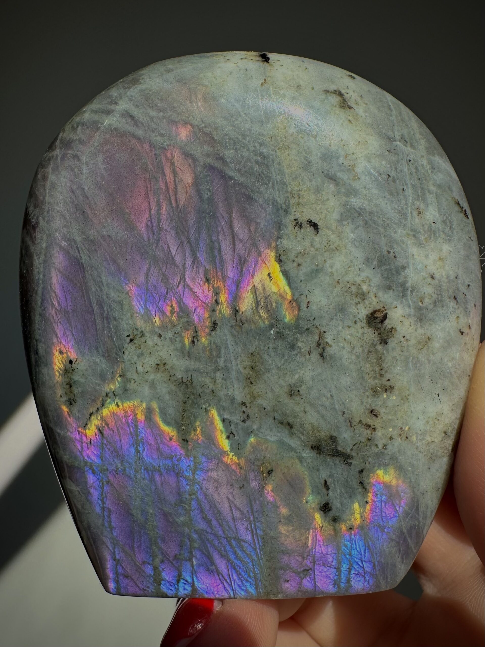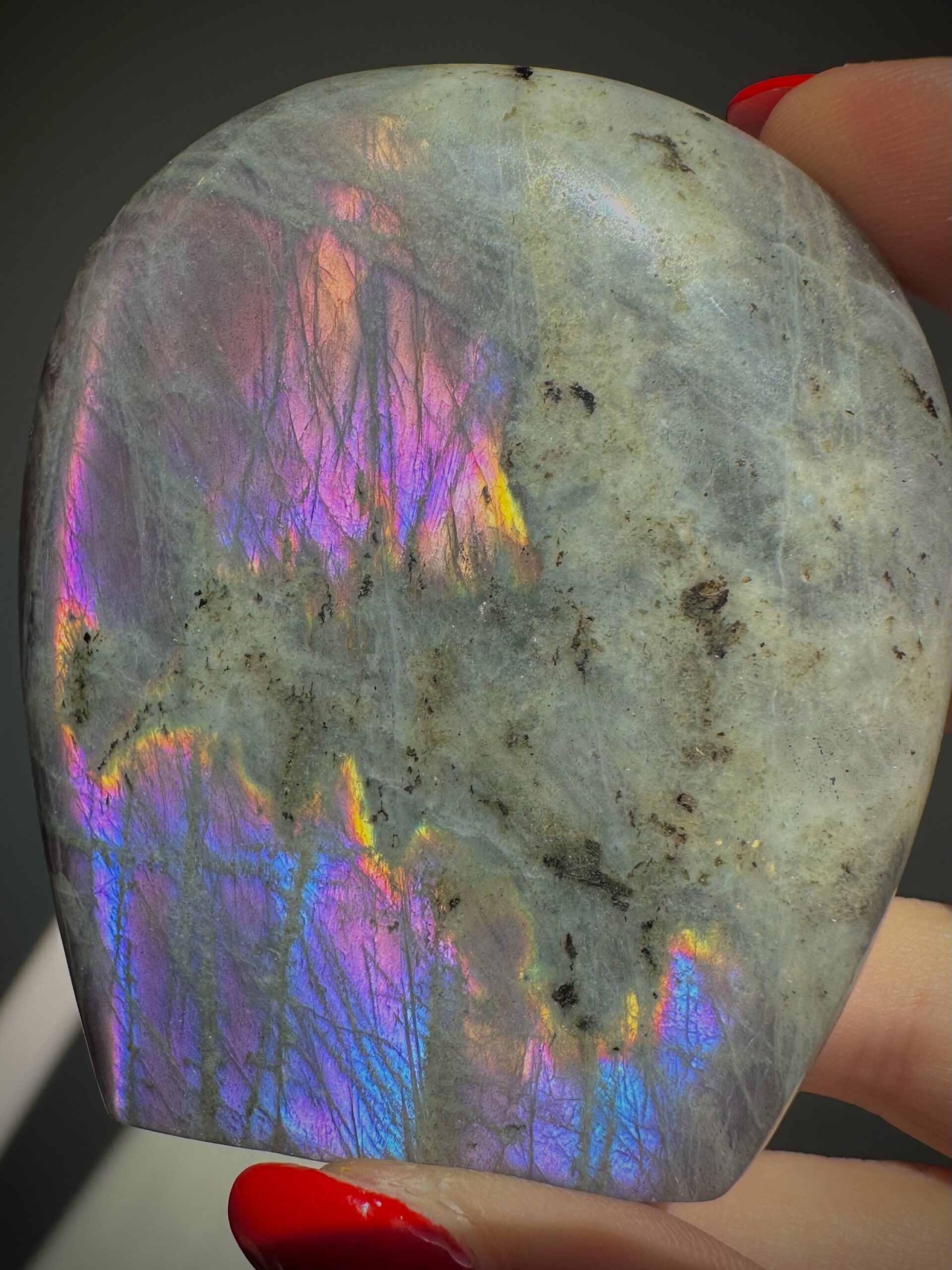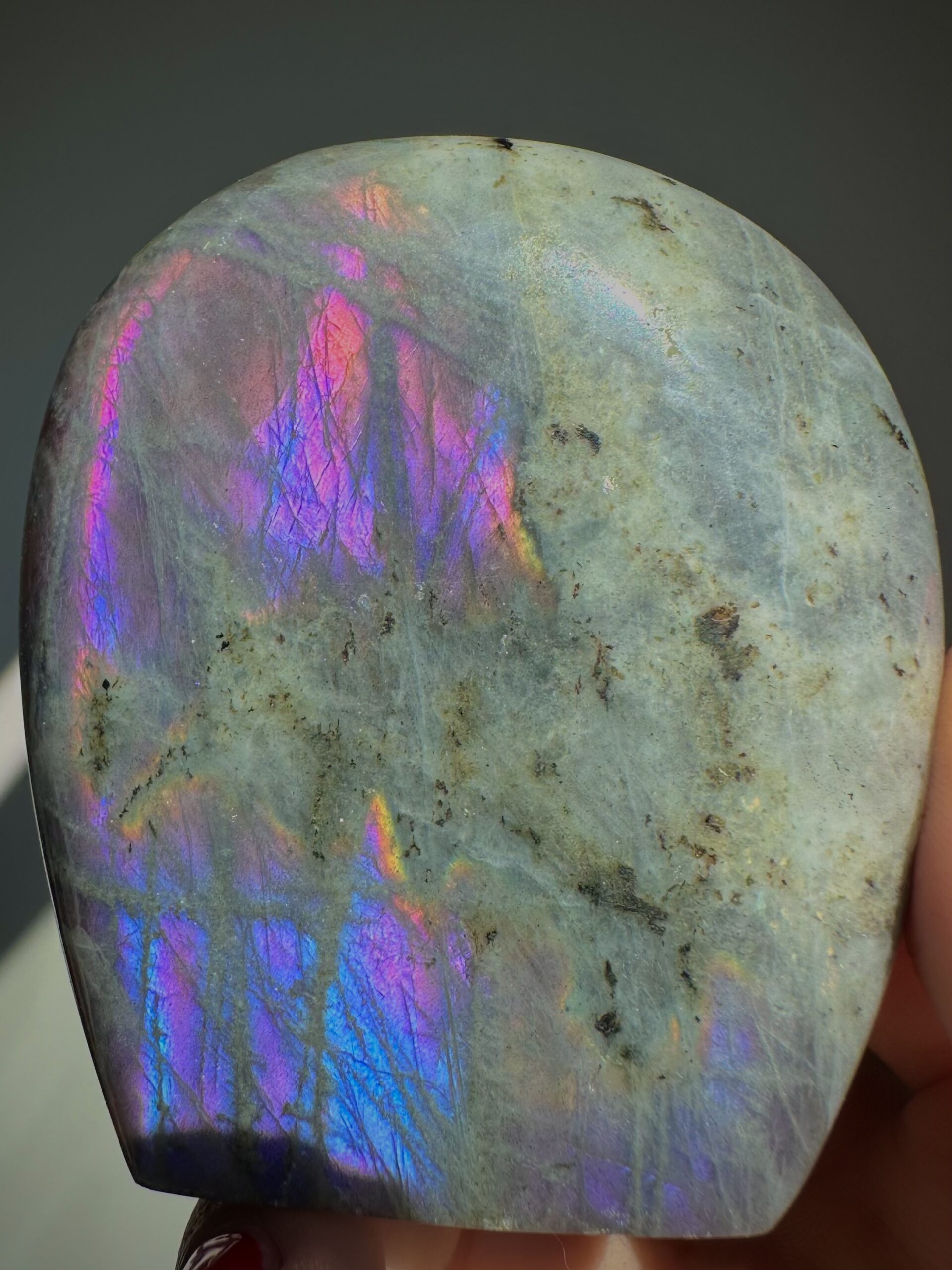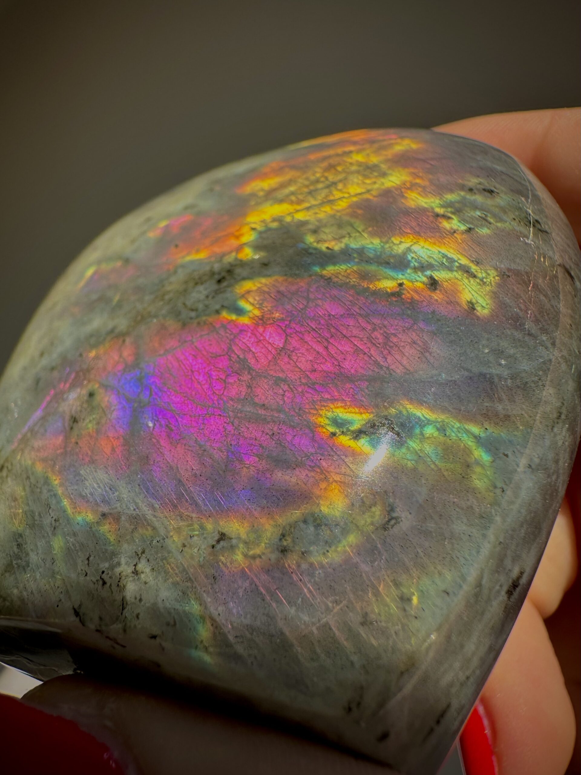 So, if you’re seeking something truly extraordinary to add to your collection or to gift to a fellow crystal lover, our pink and purple Labradorite is an exquisite choice. With its unparalleled beauty and scarcity, it’s sure to become a cherished treasure that sparks joy and wonder for years to come. 🌈