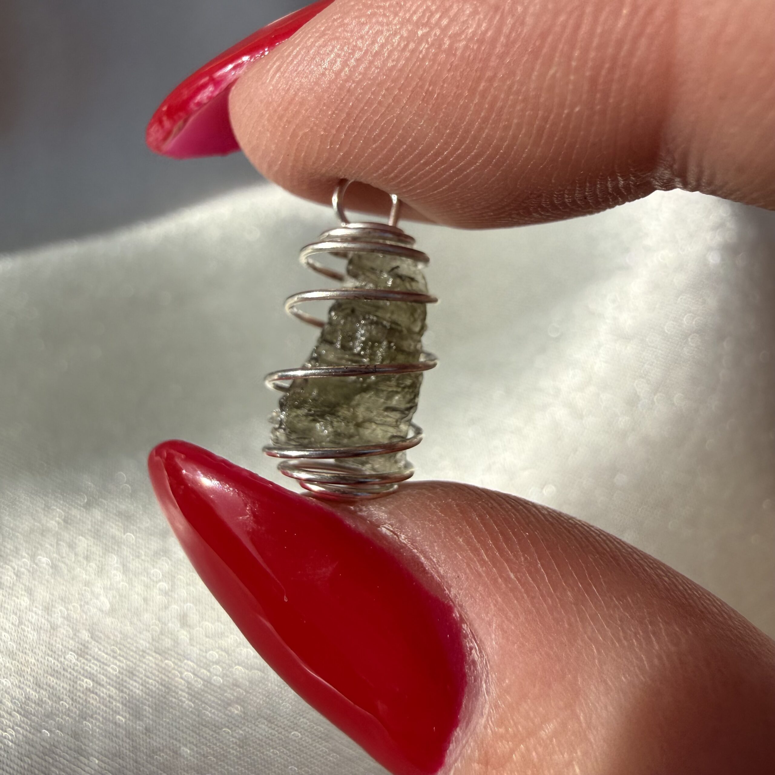 A pure expression of Moldavite in its natural form. These raw Moldavite cage pendants carry an untamed, high-vibrational energy, just as they were formed, untouched and full of character.