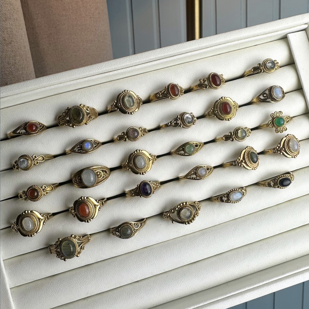 Each ring is handmade with care, crafted from gold-plated brass and featuring a natural gemstone intuitively chosen just for you.