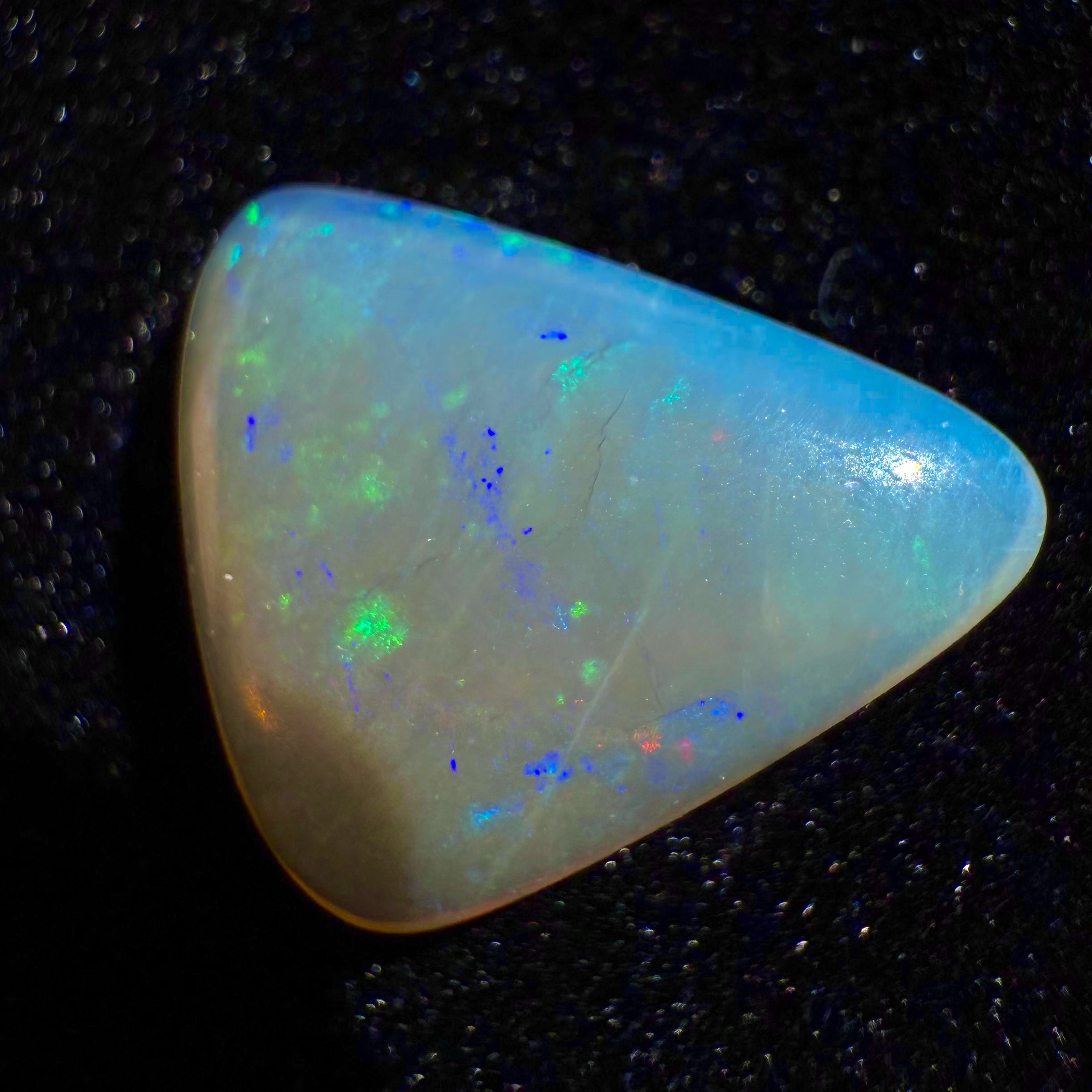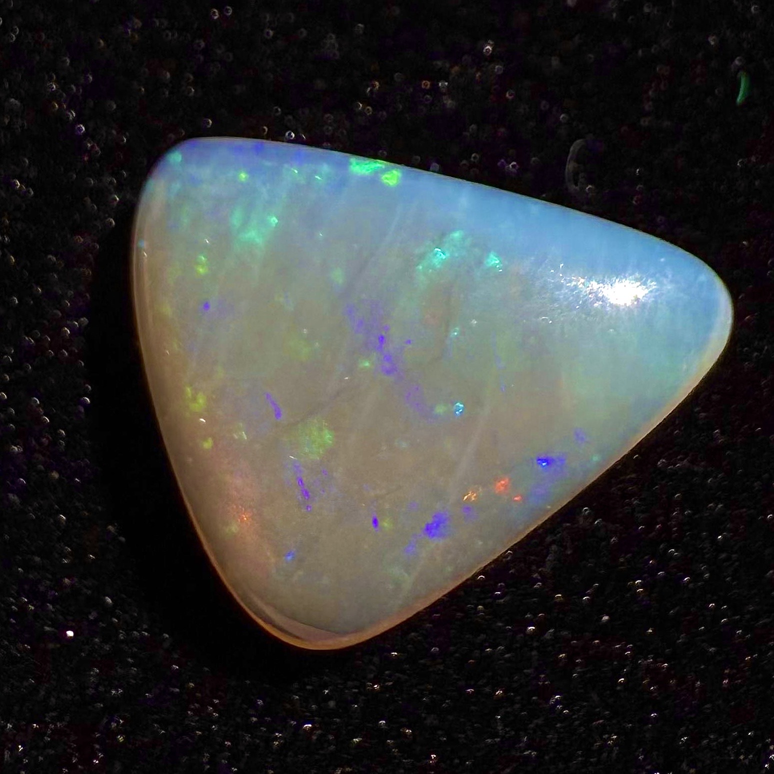 This is one of those opals you truly have to see in person to appreciate. Shine a light on it, and you’ll witness an incredible play of color come alive — with a rare and striking purple flash that sets it apart from the rest.