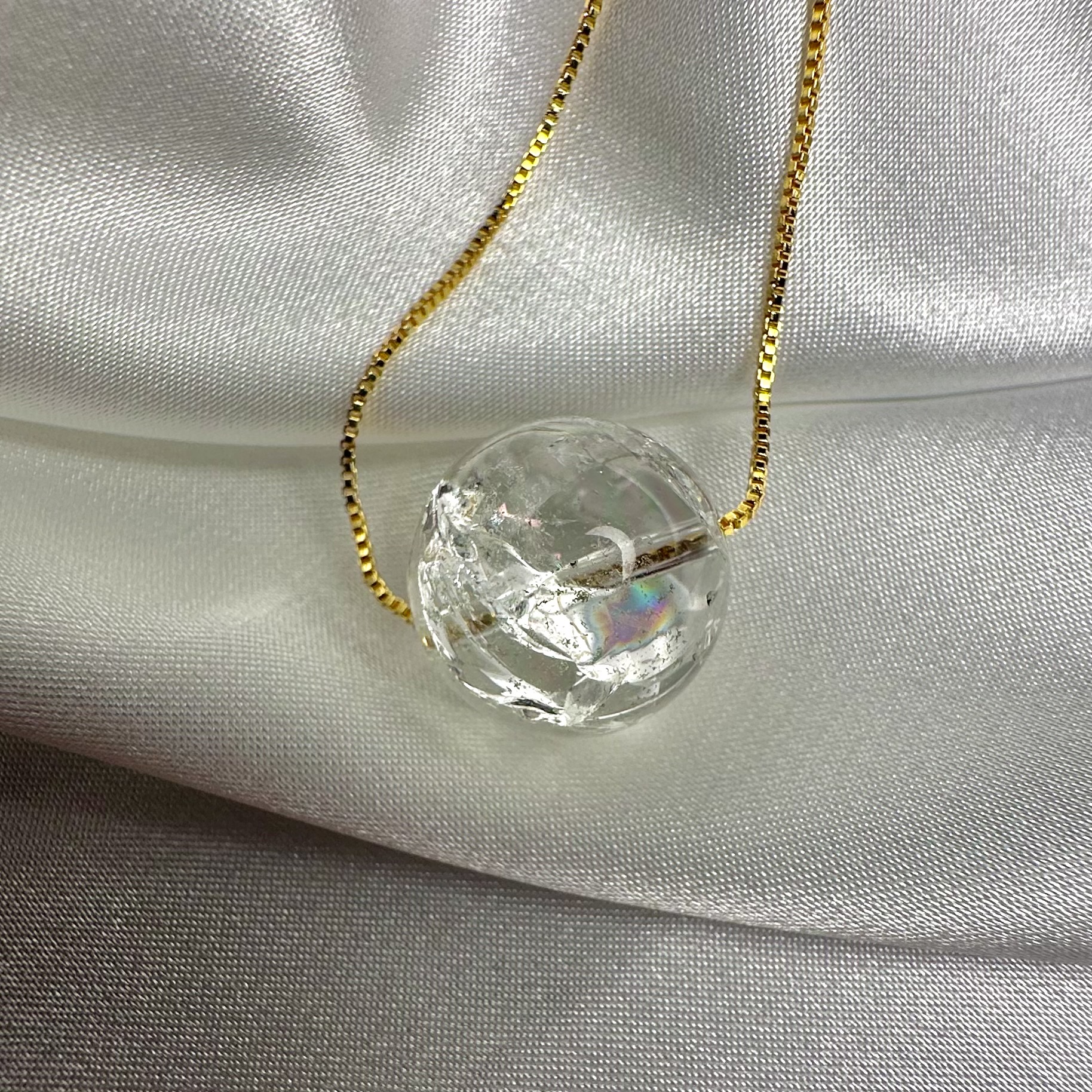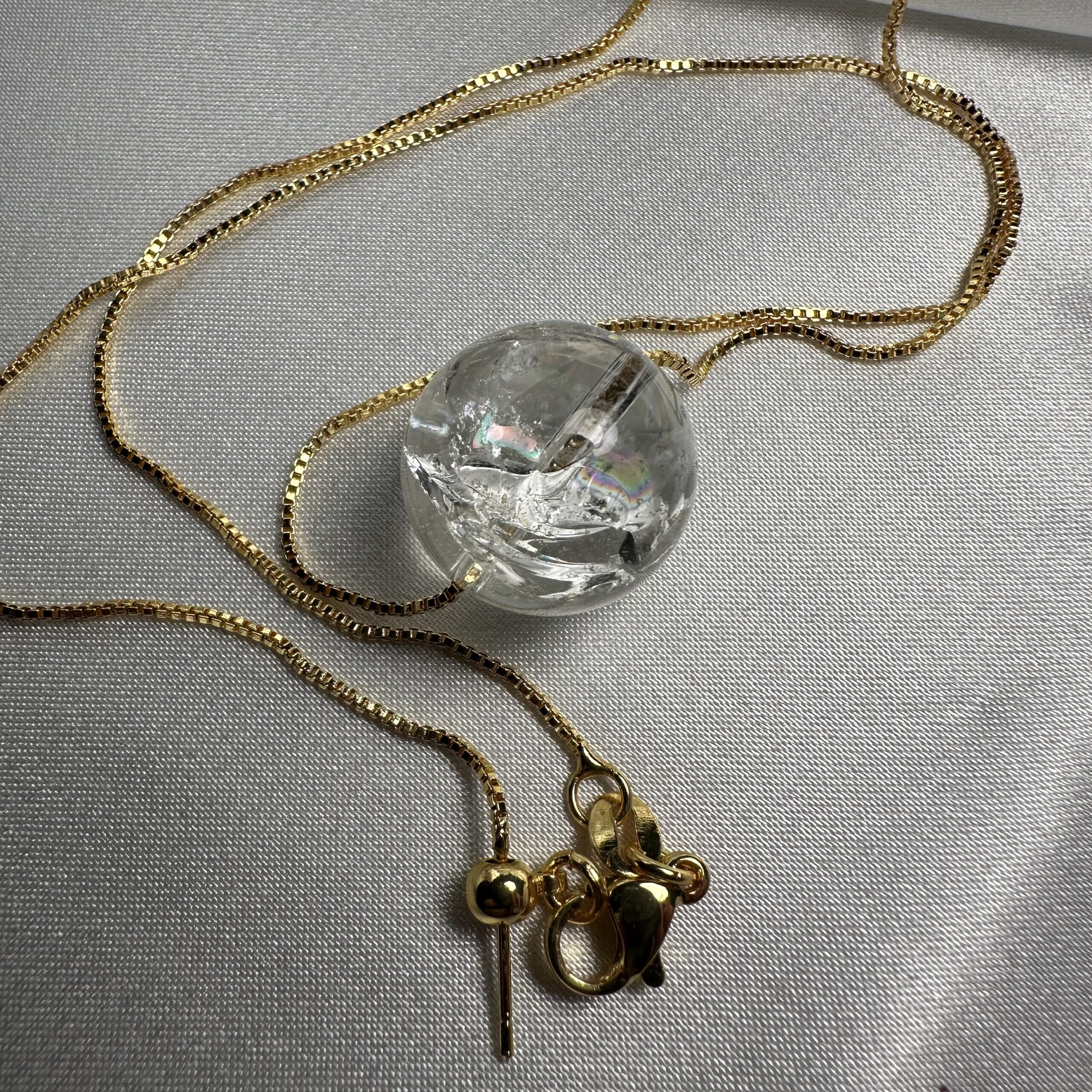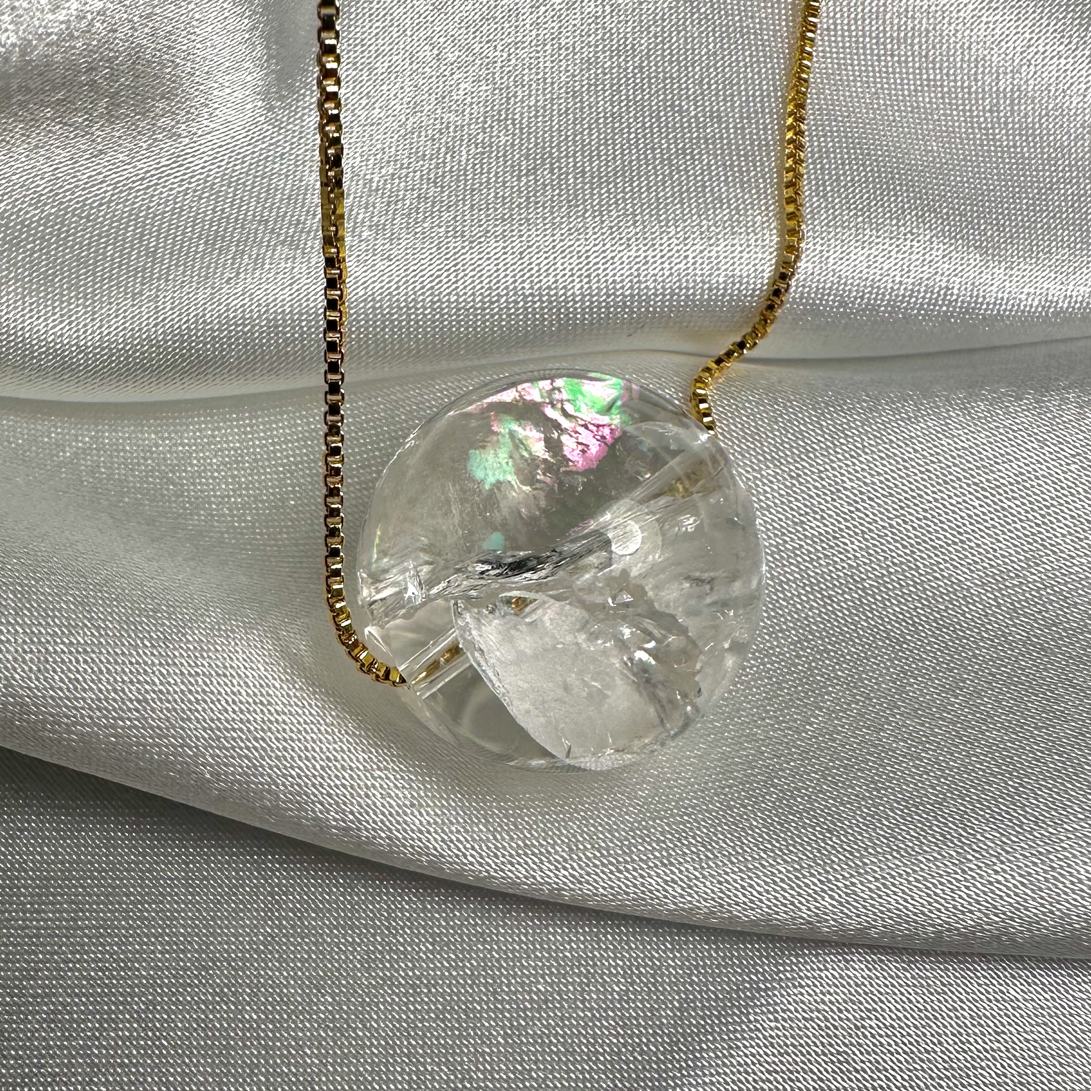 Clear quartz is revered for its purity and energy, symbolizing clarity, harmony, and light. The natural rainbows within the stone add a magical dimension, making this necklace not just a piece of jewelry, but a wearable work of art.