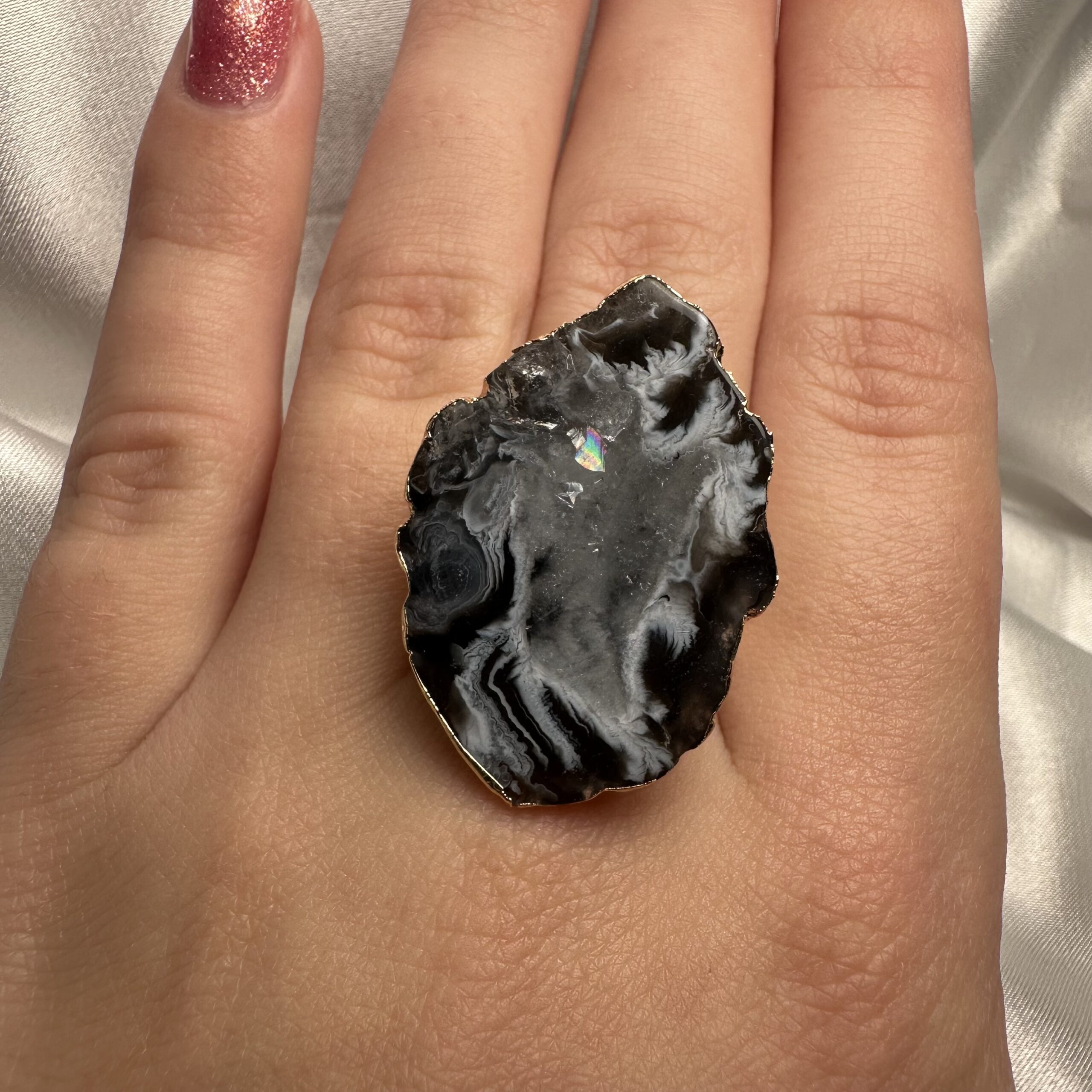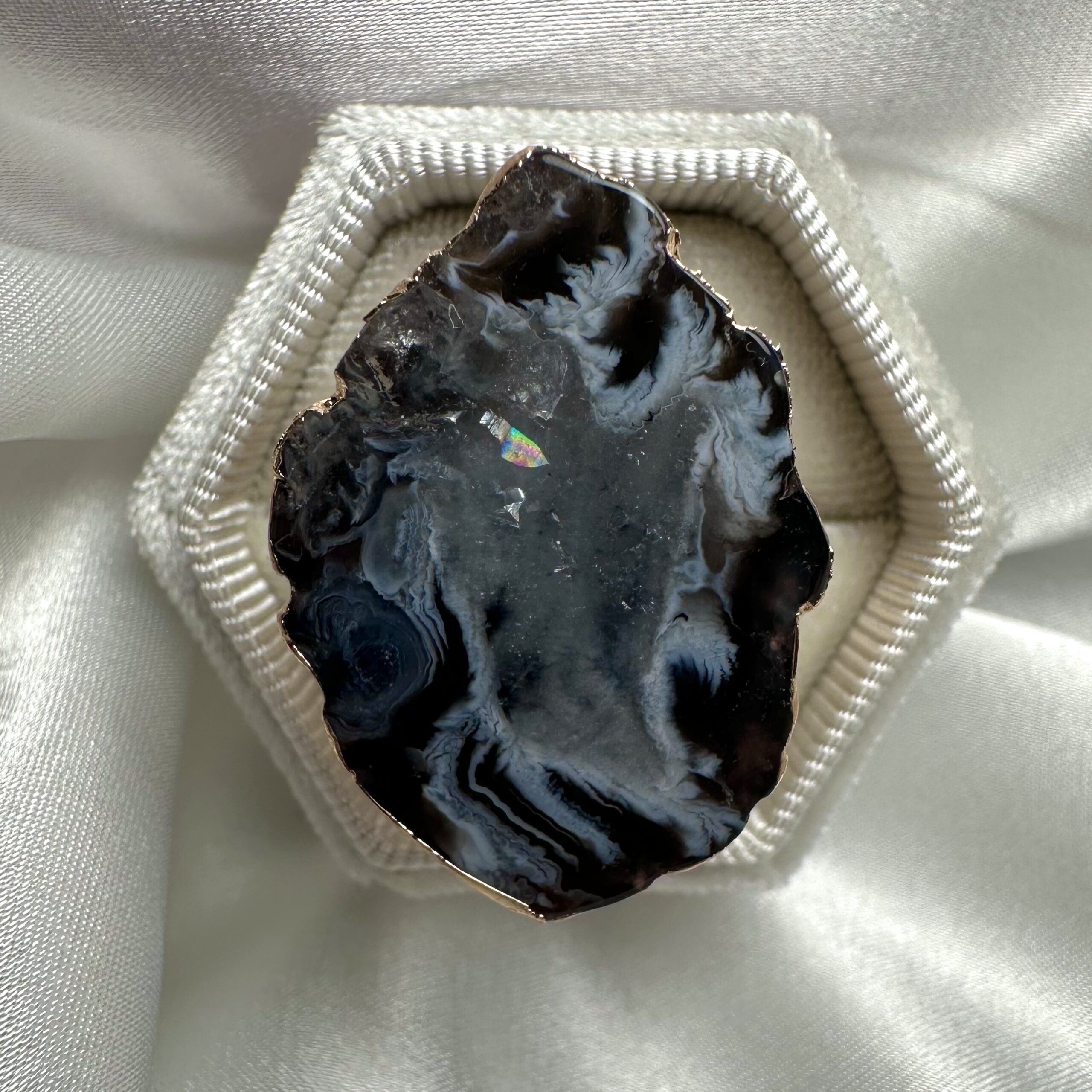 Make a bold statement with our XL Natural Agate Ring, gold-plated and adjustable to fit you perfectly. Each ring is set with a stunning, one-of-a-kind natural agate, radiating the unique beauty of nature’s colors—soft blues, purples & pinks, earthy browns, mysterious black, and more. No two rings are alike, ensuring you own a piece as unique as you are.